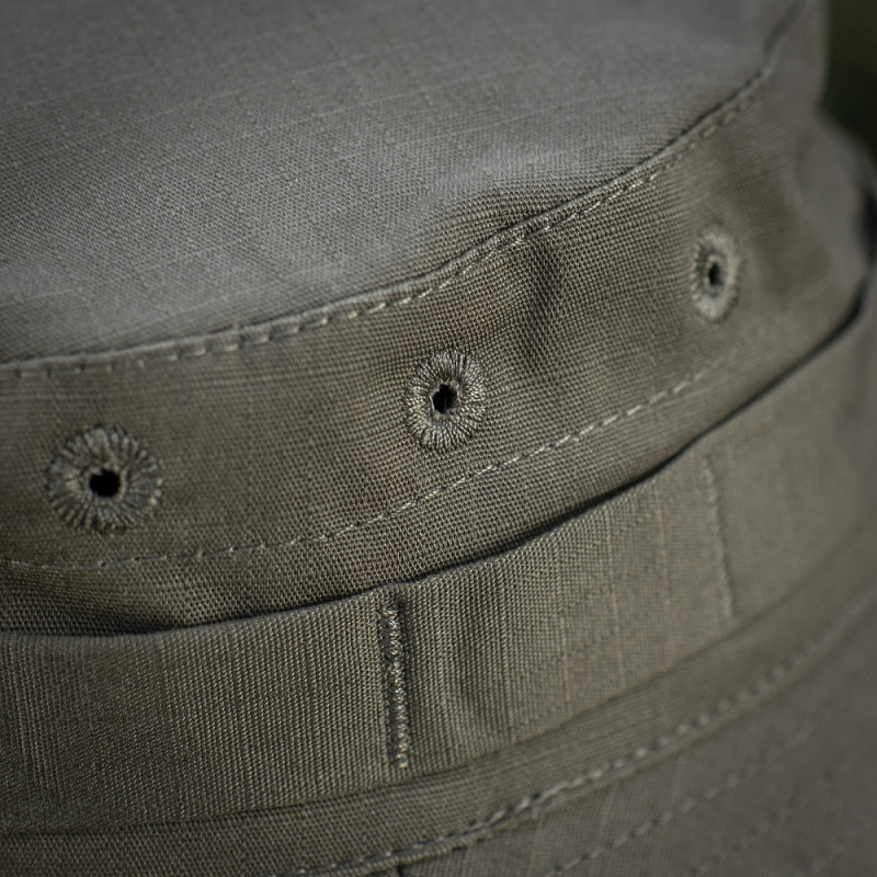 Wygodny kapelusz taktyczny od marki M-Tac doskonale sprawdzi się w codziennym użytkowaniu w gorącym sezonie. Wykonany z wytrzymałej amerykańskiej tkaniny rip-stop (63% poliester, 35% bawełna, 2% elastan). Wszystkie szwy są ukryte od wewnątrz. Ta metoda obróbki szwów sprawia, że kapelusz jest wygodniejszy w długotrwałym noszeniu, co także zwiększa jego odporność na zużycie.