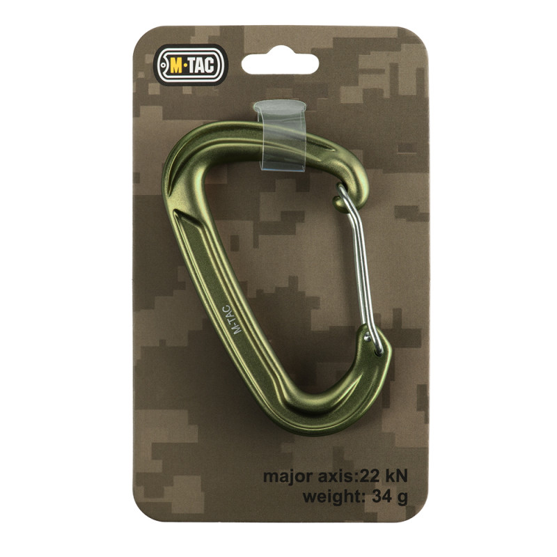 M-TAC KARABIŃCZYK TYPE 3 to asymetryczny karabińczyk w kształcie litery D, który stanie się niezawodnym towarzyszem podczas turystyki i aktywnego wypoczynku, a także niezastąpionym elementem wyposażenia w terenie. Wykonany z aluminium — materiału charakteryzującego się trwałością, niską wagą, wysoką wytrzymałością oraz odpornością na korozję. Uwaga: karabińczyk nie nadają się do asekuracji wspinaczkowej ani innych sportów wymagających wytrzymałości na duże obciążenia. Materiał: aluminium; Wymiary: 8,5 x 5 cm; Wytrzymałość wzdłuż osi podłużnej: 22 kN Szerokość otwarcia: 25 mm Waga: 34 g.