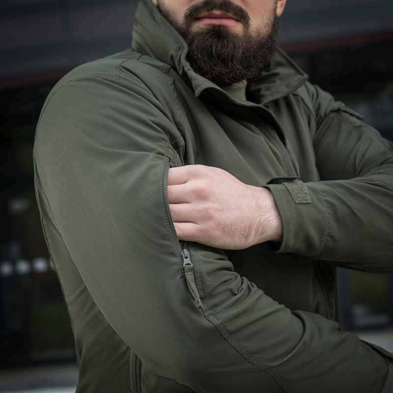 Kurtka M-Tac to lekka kurtka Flash wykonana z wiatroodpornego i odpornego na wilgoć materiału AVENGER ™ firmy BROOKWOOD® (USA). Ten materiał jest produkowany w Stanach Zjednoczonych i używany przez Siły Zbrojne Stanów Zjednoczonych (Mil-Spec-PD-06-04).