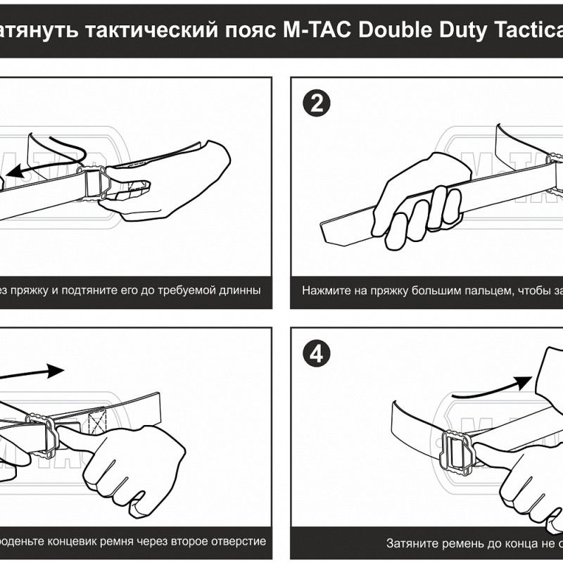 Pas taktyczny M-Tac Double Duty jest przeznaczony do ciągłego i długotrwałego użytkowania. Pas składa się z dwóch mocnych nylonowych pasków zszytych mocną nicią. Gęstość materiału pozwala na noszenie kabur i ładownic na pasku. Pas mocowany do talii za pomocą uniwersalnej klamry wykonanej z wytrzymałego polimeru.
