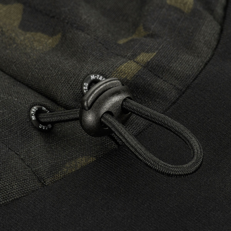 Kieszeń kangurka w kształcie trapezu umożliwia ogrzanie dłoni lub przechowywanie niezbędnych przedmiotów. Kaptur oraz wstawki naramienne wykonano z wysokiej jakości materiału NYCO Extreme w kamuflażu Multicam. Regulowany kaptur skutecznie chroni przed wiatrem i niepogodą. Na piersi znajduje się wyhaftowane logo marki.