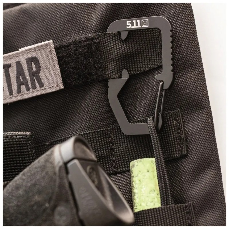 Mimo, że karabinek nie jest przystosowany do ciężkich prac alpinistycznych, to jest to rozwiązanie jakiego szukałeś. 5.11 Hardpoint M2 jest przystosowany do organizacji wyposażenia. Posiada specjalny zaczep o pasek MOLLE, który sprawia, że zaczepione np. do pasa rękawiczki są stabilnie usytułowane w jednym miejscu i nie zmieniają pozycji podczas biegu. Dodatkowo po bokach karabinka są małe "ząbki", aby zapobiec rotowaniu się karabinka.