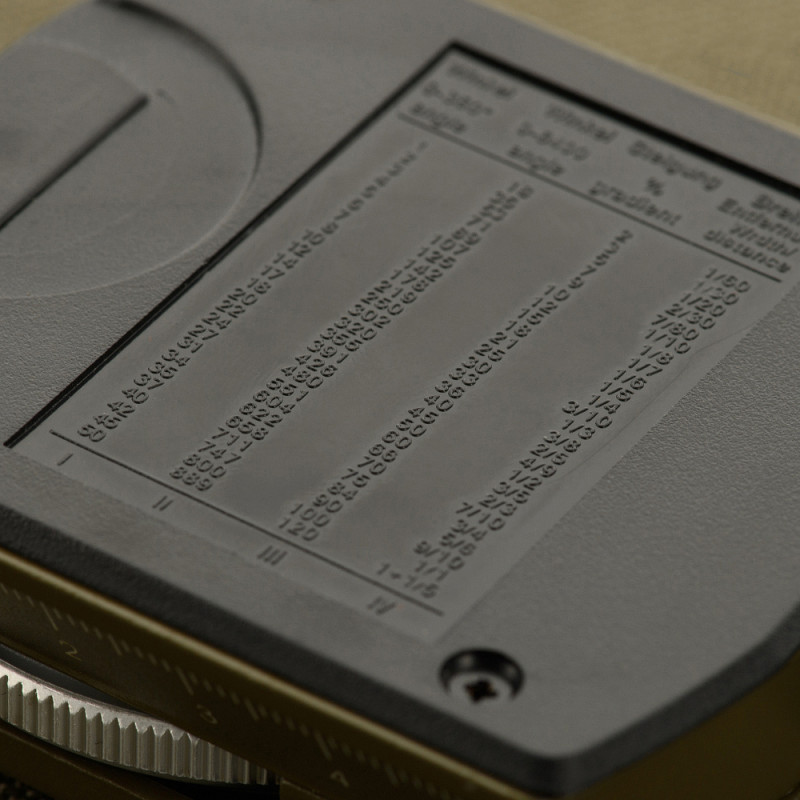 Kompas M-Tac na składanej ramie (pokrywa z celownikiem i podstawka, na której obraca się kapsuła z tarczą i strzałką). Ramka służy do ustawiania azymutu. Azymut przyjmuje się w następujący sposób: kierujemy długi bok kompasu do punktu odniesienia, obracamy kapsułę tak, aby północ strzałki pokrywała się ze znakiem północy na obudowie kompasu. Za pomocą nacięcia umieszczonego na końcu ramki, zwróconego do punktu odniesienia, odczytujemy wartość liczbową azymutu. Praca z kompasem jest jeszcze bardziej wygodna dzięki naniesieniu na obudowie znaczników stopni. Ponadto kompas jest wyposażony w miernik poziomu cieczy i tabelę obliczeniową na dole ramki. Kompas także posiada linijkę na obudowie, a więc ten model jest bardziej zaawansowany i łatwy w użyciu w porównaniu do poprzedników.