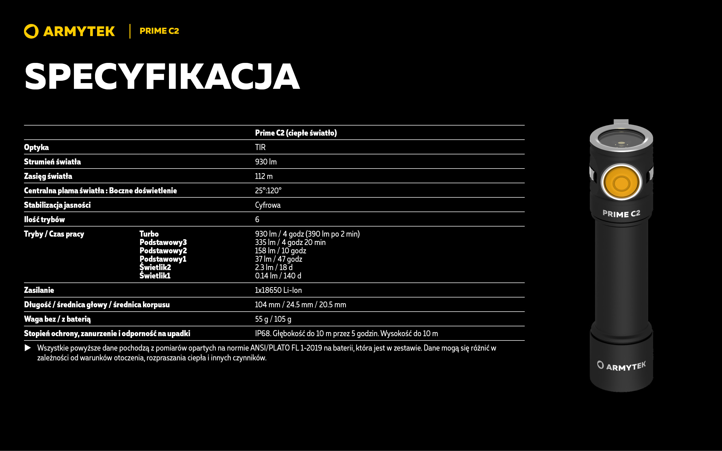 Prime C2 — to latarka dla tych, którzy w codziennym użytkowaniu korzystają z podstawowego zestawu trybów. Optymalna jasność, intuicyjna obsługa i akcesoria w zestawie oraz opcjonalne akcesoria sprawiają, że nowość z serii Prime jest niezastąpionym głównym lub dodatkowym źródłem światła na wieczorny spacer, nocne biwakowanie lub w domu.
