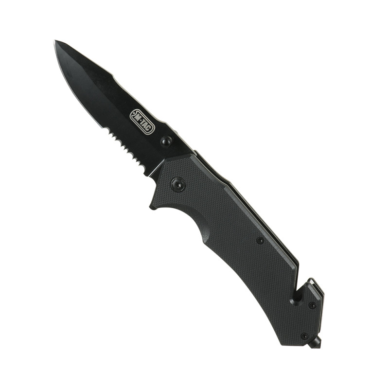 Lekki nóż składany to ważna i integralna część zestawu EDC. Wygodny kształt i agresywny design wyróżniają ten model pozytywnie wśród segmentu noży taktycznych. Ostrze wykonano z chromowanej stali nierdzewnej (5Cr15MoV), która jest malowana na kolor czarny. Zapewnia trwałość ostrzenia oraz posiada doskonałe właściwości tnące. Kolejnym obiektem wartym uwagi jest uchwyt. Jego kształt jest dość nietypowy, ale ergonomiczny. Projektanci starali się, aby rękojeść była wygodna dla osób o różnych kształtach i rozmiarach dłoni oraz różnych chwytach. Czarne nakładki wykonano z chropowatego polimeru G10. Ten kompozyt rękojeści zapewnia wytrzymałość, lekkość i odporność na wilgo Nóż otwiera się za pomocą płetwy (flippera) oraz obustronnego kołka. Ponadto ten model zapewnia zbijak do szkła do rozbijania szkła w różnych sytuacjach awaryjnych oraz przecinak do zawiesi do cięcia lin, sieci i innych rzeczy. Klips pozwala na zamocowanie noża w kieszeni i znacznie ułatwia jego wyciągnięcie. Nóż składany Type 3 od marki M-Tac będzie dobrym wyborem do codziennego użytku w warunkach miejskich, podczas pieszych wędrówek lub wędkowania. Długość całkowita: 19,7 cm Długość rączki: 11,5 cm Grubość ostrza: 2,7 mm Materiał ostrza: stal 5Cr15MoV z czarną powłoką Materiał uchwytu: G10