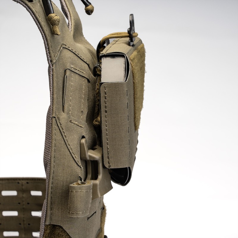 Templar's Gear Astrolabe Admin Panel Gen 2 to ulepszona wersja lekkiej kieszeni Admin Pocket, zaprojektowanej do wygodnego przenoszenia smartfona lub urządzenia GPS w kamizelce taktycznej. Nowa wersja poprawia sztywność i stabilność kieszeni, chroni telefon wewnątrz za pomocą pętli z linki antywstrząsowej i wykorzystuje nową magnetyczną klamrę FIDLOCK. Niskoprofilowa konstrukcja typu clamshell zapewnia odpowiednią ochronę i wygodną obsługę smartfona / urządzenia GPS w środowiskach taktycznych. W zestawie znajduje się samoprzylepna naszywka na rzep, która przylega do obudowy urządzenia i zabezpiecza urządzenie wewnątrz kieszeni za pomocą rzepu.