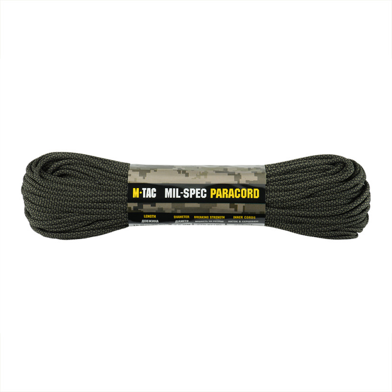 Nowy M-TAC PARACORD 550 MIL-SPEC 15 M stanie się niezastąpionym elementem wyposażenia zarówno w terenie, jak i podczas aktywnego wypoczynku. Paracord spełnia wojskową normę MIL-C-5040H (Military Specification) Departamentu Obrony Stanów Zjednoczonych, która określa wymagania dla plecionych sznurów nylonowych. Paracord M-Tac 550 mil-spec 15 m wykonany jest w 100% z nylonu – materiału lekkiego, a jednocześnie bardzo odpornego na zużycie. Składa się z zewnętrznego oplotu (o wzmocnionej strukturze) oraz rdzenia, które w połączeniu zapewniają bardzo wysoką wytrzymałość na rozciąganie przy jednocześnie niewielkiej wadze. Materiał: 100% nylon Długość: 30 m Średnica: 3.6 mm Wytrzymałość na zerwanie: 270 kg Liczba włókien w rdzeniu: 9+1 szt.