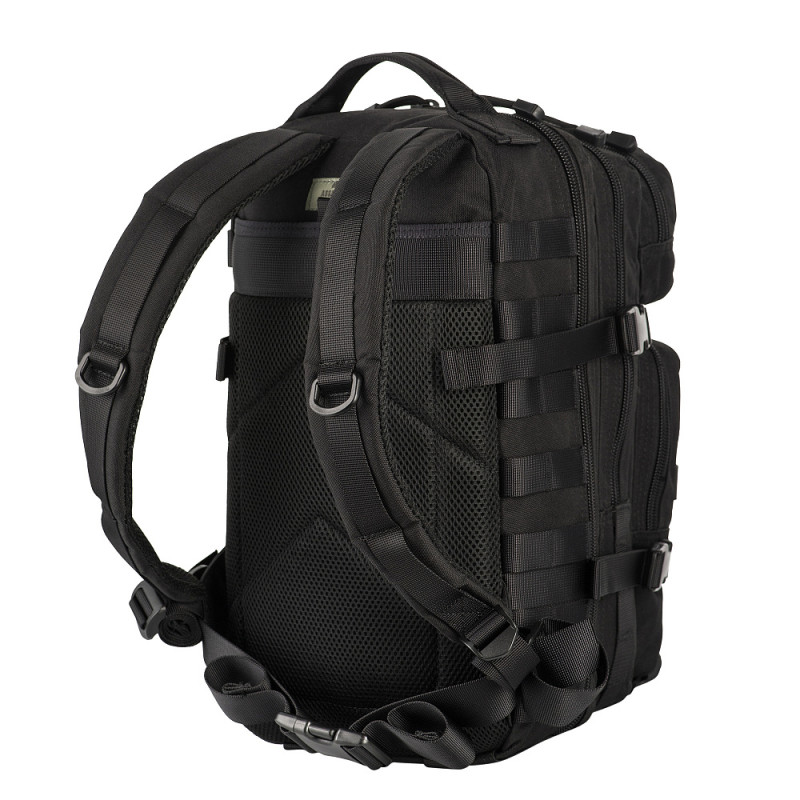 Plecaka M-Tac Backpack Assault Pack można używać jako plecaka miejskiego lub sprawdzającego się na krótkich wycieczkach. Został wyposażony w system zapinania Molle i posiada dwie 2 komory główne zapinane na zamek błyskawiczny. Z przodu znajdują się 2 dodatkowe kieszenie zapinane na zamek błyskawiczny. Plecak posiada paski do noszenia z miękkim wypełnieniem i regulowaną długością. Wymiary: 42 x 20 x 25 cm Waga: 1100 g Pojemność: 20 l Materiał: 100% poliester Charakterystyka: - wygodne zawieszenie z możliwością regulacji; - zdejmowany pas, pozwalający równomiernie rozłożyć obciążenie; - siateczka na plecach i paski wentylacyjne; - powierzchnie boczne i czołowe wyłożone są zawiesiami do mocowania dodatkowego ekwipunku za pomocą systemu MOLLE; - języczki na zamkach pozwalają na otwieranie działów plecaka bez konieczności zdejmowania rękawiczek; - wygodny i niezawodny uchwyt do przenoszenia.