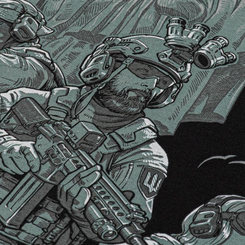 Nadruk przedstawia nasze wojsko. Ci, którzy są z pierwszych dni wojny, to „inna armia świata”. Ich działania zmieniają świat. Każdy z nich jest bohaterem. Matka Ojczyzna stoi za armią, która jest symbolem niewinności narodu ukraińskiego. Jej tarcza chroniona przed kulami wroga, a jej miecz daje godny odpór wrogom. Jest spokojna i niezłomna, taka sama jak kaddy ukraiński obrońca.