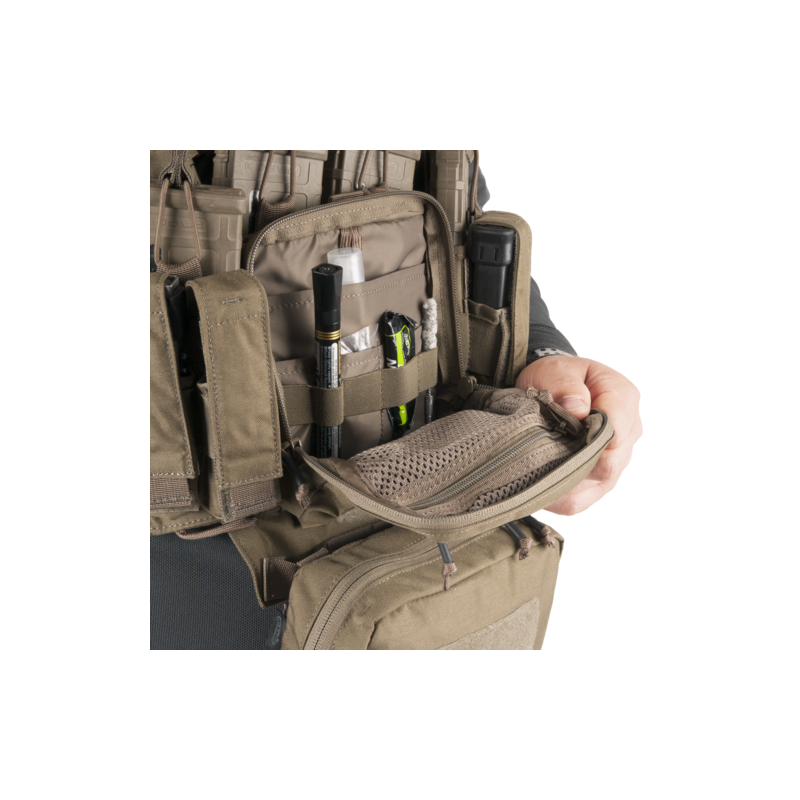 Kamizelka oferuje liczne kieszenie i przegródki ułatwiające organizację wyposażenia. Znajduje się w niej między innymi pojemna kieszeń cargo z wewnętrznym organizerem i siatkową kieszenią zapinaną na zamek, a także dedykowane ładownice na magazynki do platform AR i AK. Dodatkowa odpinana kieszeń z systemem PALS/MOLLE umożliwia zamocowanie kolejnych elementów ekwipunku, na przykład wkładu medycznego.
